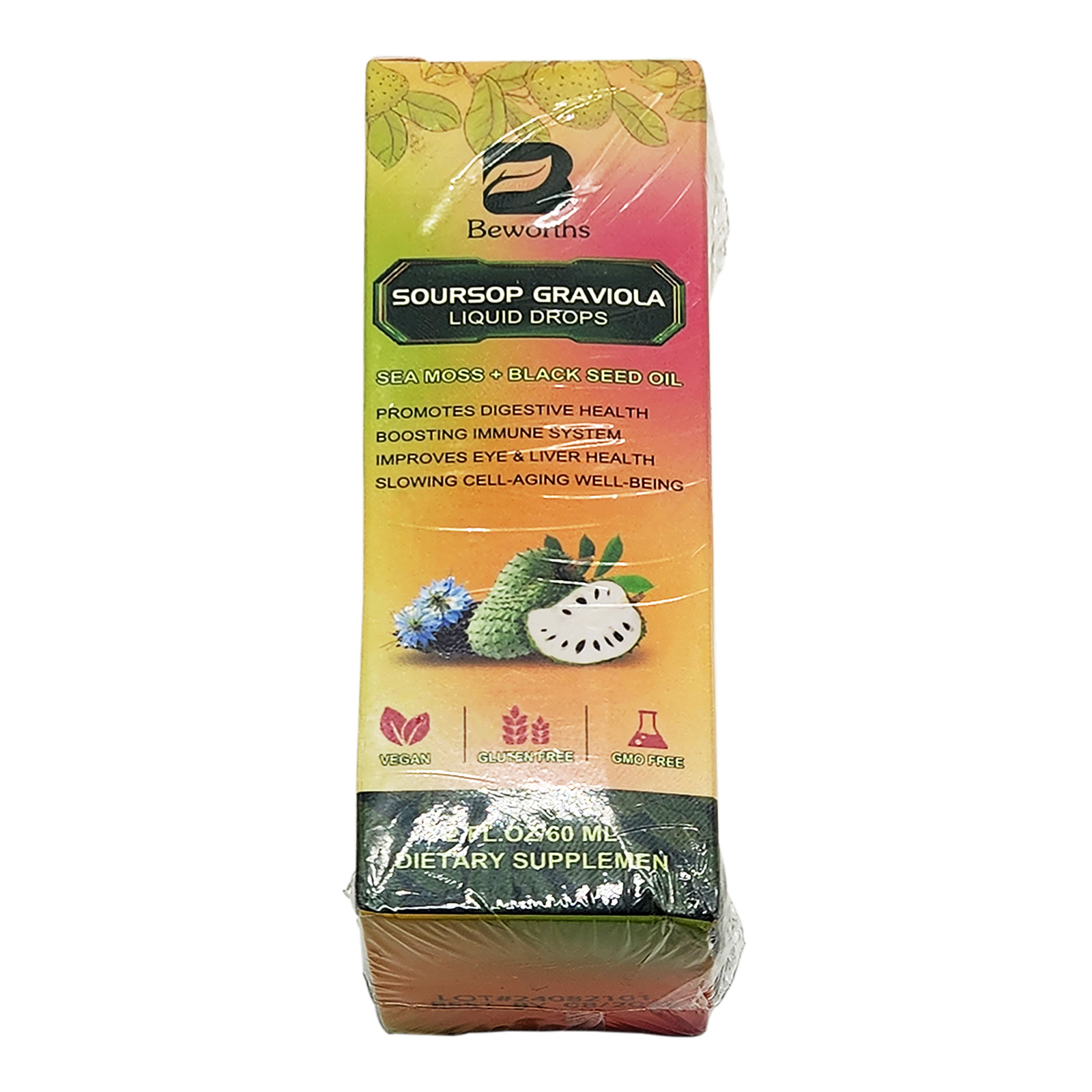 - 【UNIQUE PREMIUM SEA MOSS SOURSOP BITTERS BLEND】: B Beworth's soursop bitters liquid supplement formula combines organic sea moss, black seed oil, and soursop graviola leaf & fruit extract, elderberry extract, turmeric, vitamin C, and D3 ingredients. Soursop bitters contain soursop leaves and fruit combined with Irish sea moss and black seed oil formula. It is rich in vitamins and antioxidants, promoting immune system support. Soursop Liquid Drops are vegan-friendly, gluten-free, and made from natural ingredients. Take 2ml daily for enhanced overall well-being.