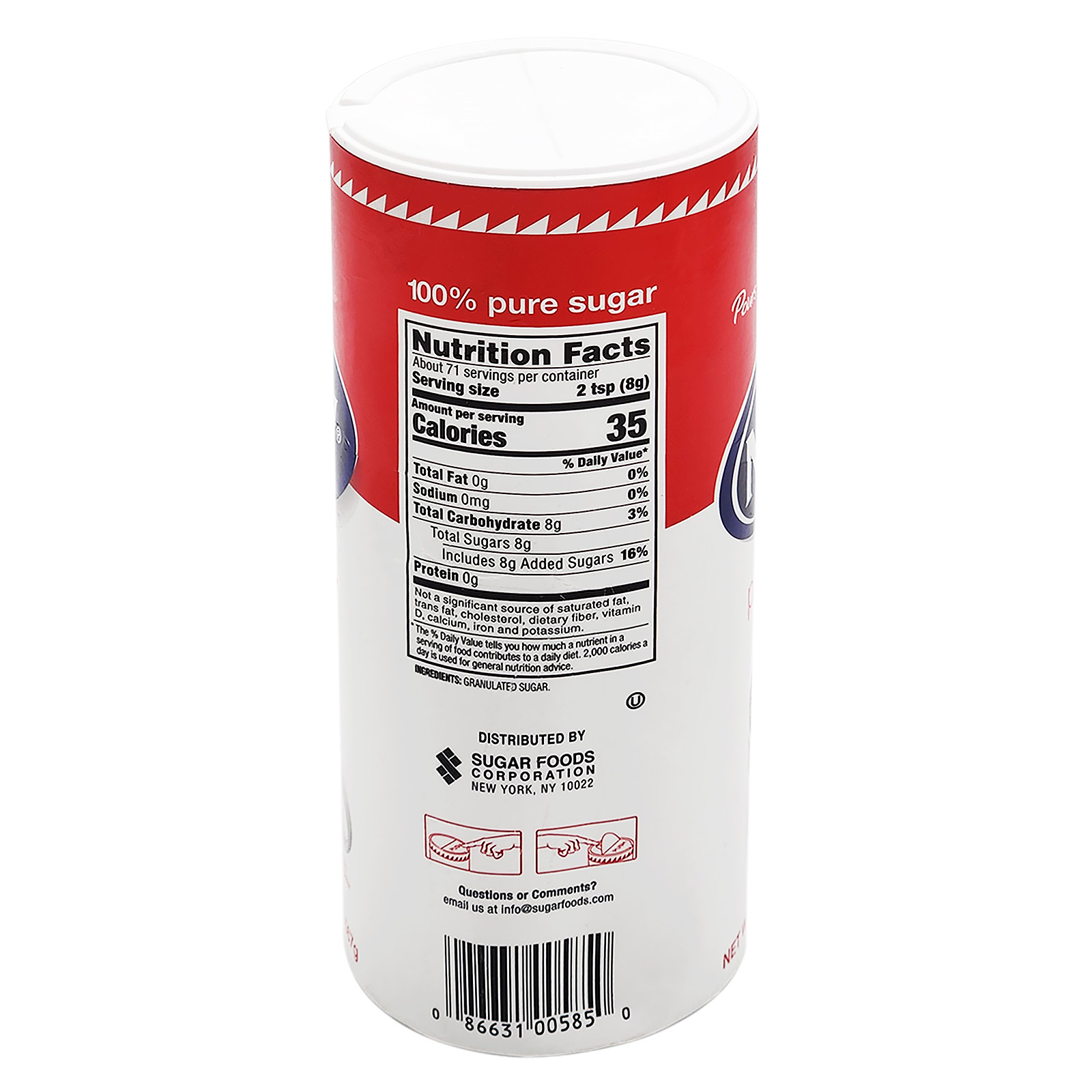Made from pure cane sugar, it dissolves quickly and evenly in hot or cold drinks. The resealable lid helps maintain freshness and prevents spills, making it a practical staple for everyday use.