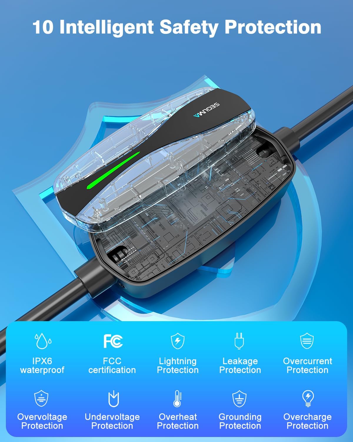 - Intelligent Charging Features---Feature with built-in advanced chipset, Seguma ev charger provides extensive protection against lightning, leakage, grounding issues, over and under voltage, overcharging, excessive current, and overheating. Additionally, the ev level 2 charger automatically shuts off once your vehicle is fully charged, enhancing car safety. Tips: We recommend installing a circuit breaker on your home circuit for added safety measures