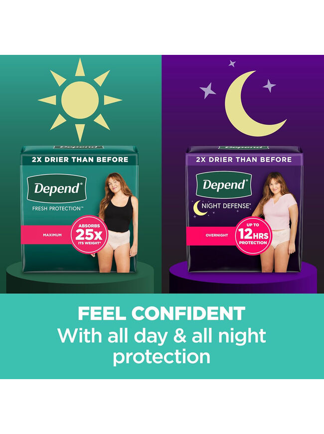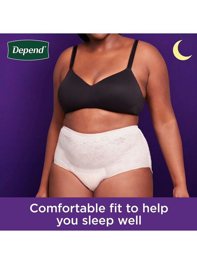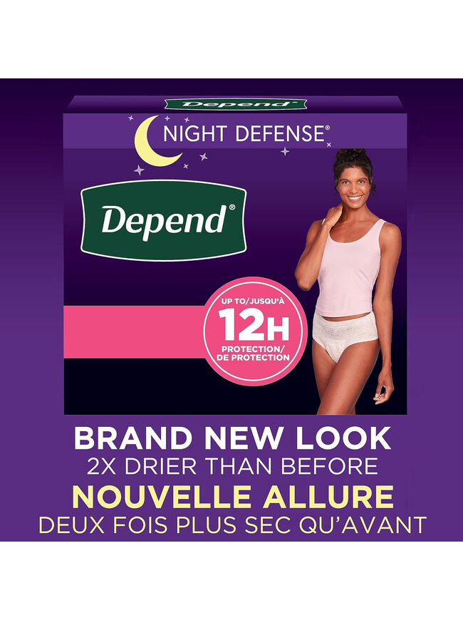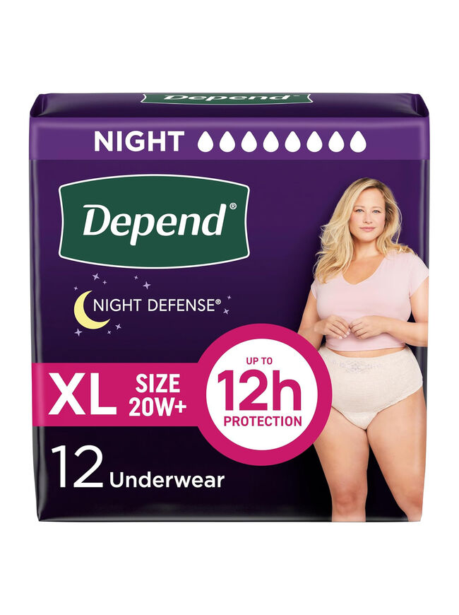 Depend Night Defense Adult Incontinence & Postpartum Bladder Leak Underwear for Women, Disposable, Overnight, Extra-Large, Blush, 12 Count, Packaging May Vary