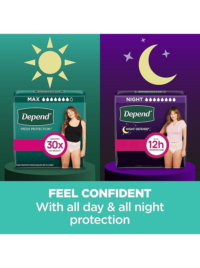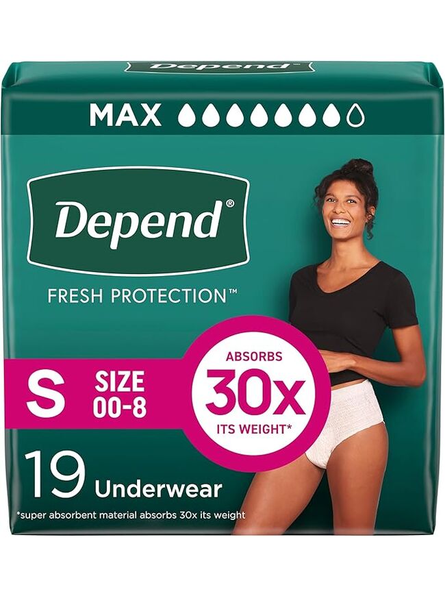 Depend Fresh Protection Adult Incontinence & Postpartum Bladder Leak Underwear for Women, Disposable, Maximum, Small, Blush, 19 Count, Packaging May Vary