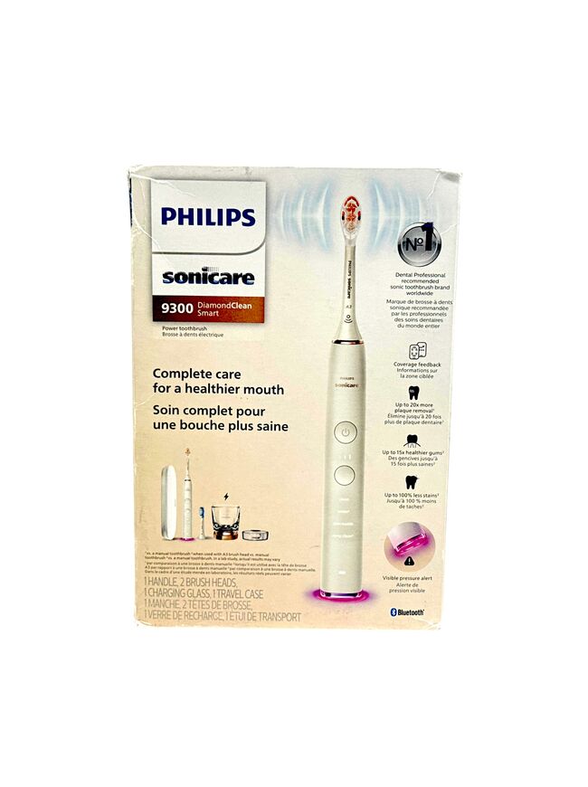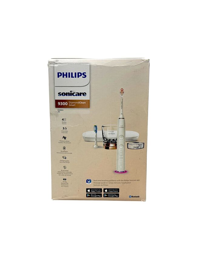Philips Sonicare DiamondClean Smart 9300 Electric Toothbrush, Sonic Toothbrush with App, Pressure Sensor, Brush Head Detection, 4 Brushing Modes and 3 Intensity Levels, Rosegold, Model HX9903/65