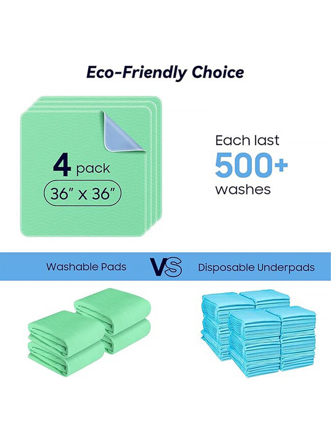 4 Pack 36” x 36” Extra Heavy Absorbency Washable Underpads, Waterproof Quick Drying Nursing Pads Incontinence Bed Pads, Reusable Washable Pee Pads for Dogs, Diaper Changing & Adults