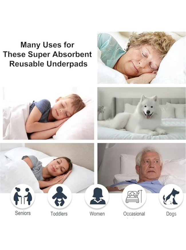 AbsorbEase® Washable Underpads 34"x36" - Waterproof, Ultra-Absorbent Incontinence Bed Pads for Adults, Seniors, Kids, Pets, Reusable Pee Pads, Odor Neutralizing, Latex-Free, USA Made (Pack of 4)