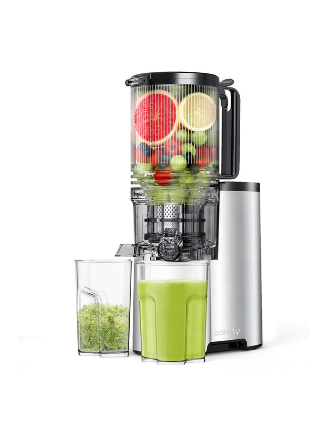 Cold Press Juicer, 5.4" Wide Feed Chute Juicers with 350w Power Motor, Slow Masticating Juicer Machine with High Juice Yield for Whole Vegetables & Fruits, Easy to Clean, Classic Silver