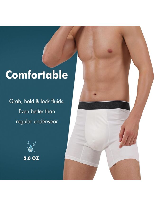 AIRCUTE Washable Absorbency Urinary Incontinence Underwear for Men Boxer Briefs for Bladder Leaks 60 ML 3 Pack (Medium, 3 White)