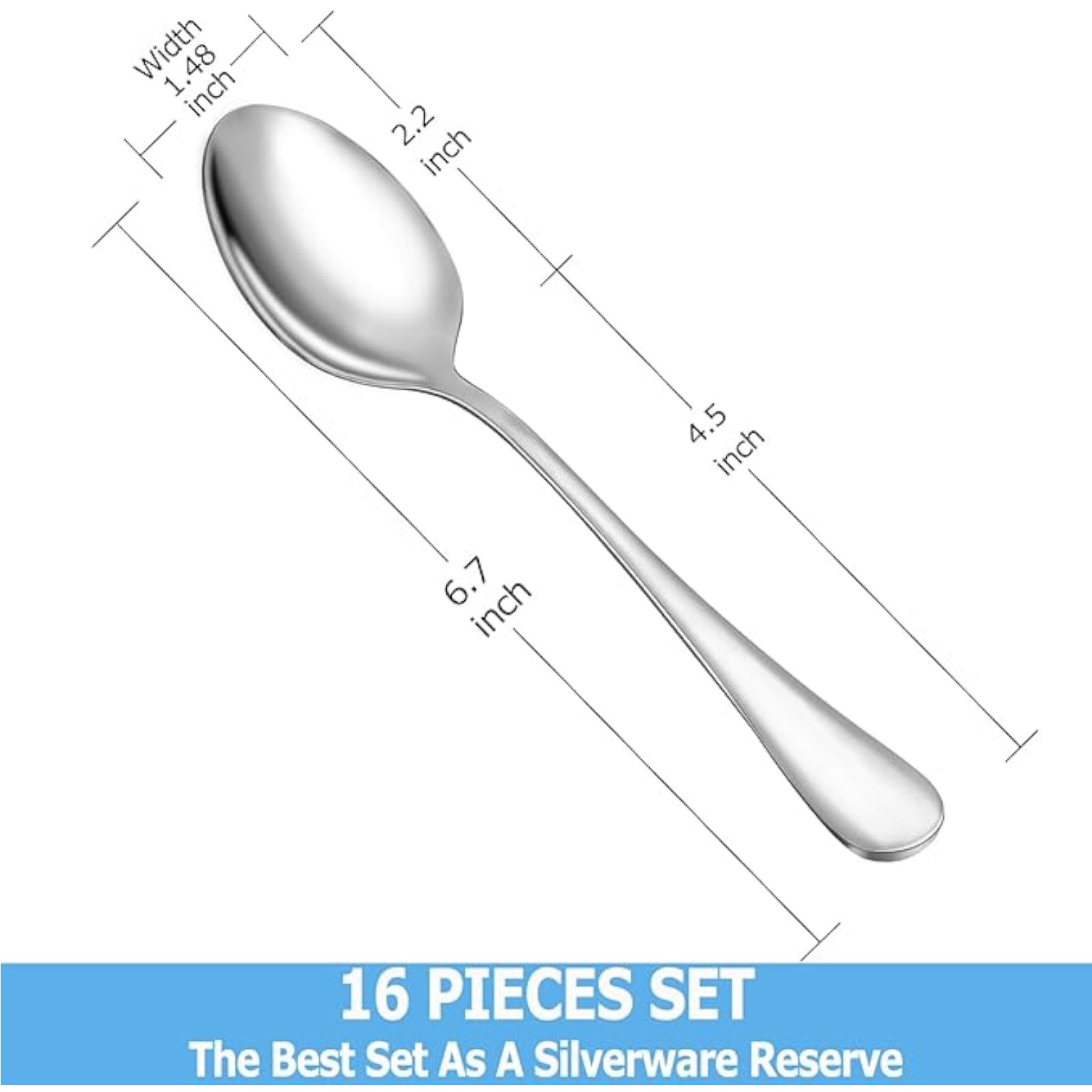 MUTNITT Teaspoon Set,16 Piece 6.7" Spoons Silverware, Premium Food Grade Stainless Steel Tea Spoons, Durable Small Spoon, Good Teaspoons, Kitchen Dessert Spoon Set, Mirror Finish & Dishwasher Safe
