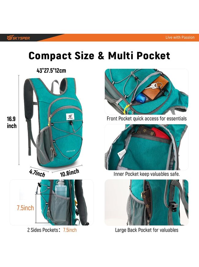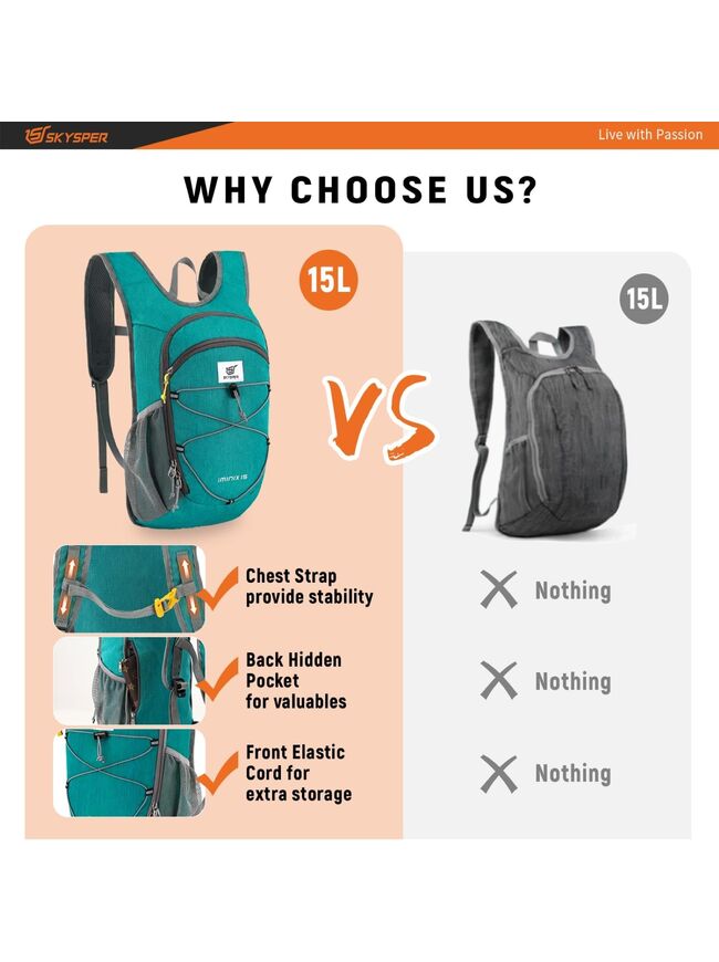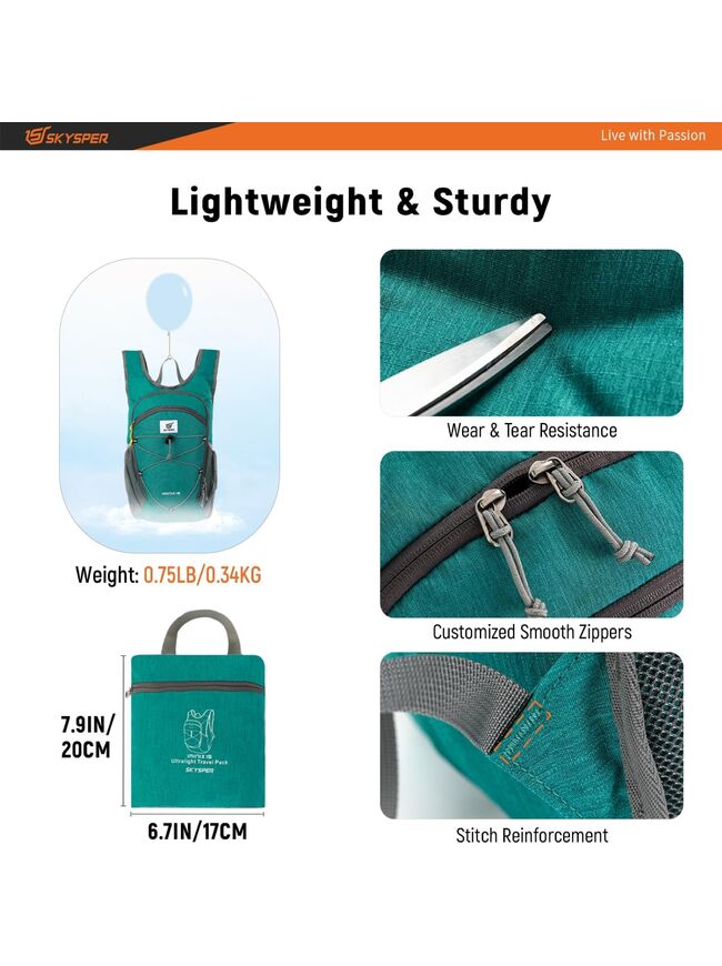SKYSPER 15L Foldable Hiking Backpack Lightweight Packable Travel Daypack with Chest Strap Small Folding Pack for Walking
