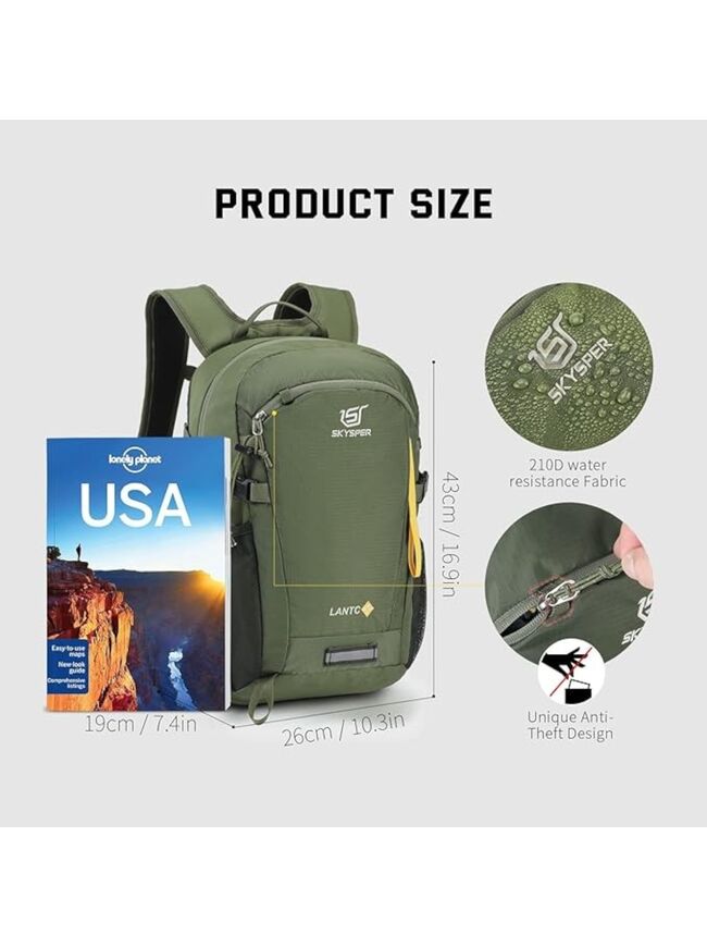 SKYSPER Small Hiking Backpack, 20L Lightweight Travel Backpacks Hiking Daypack for Women Men - Army Green