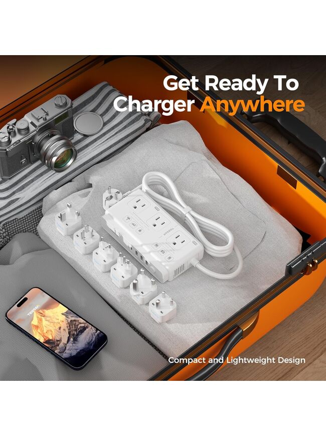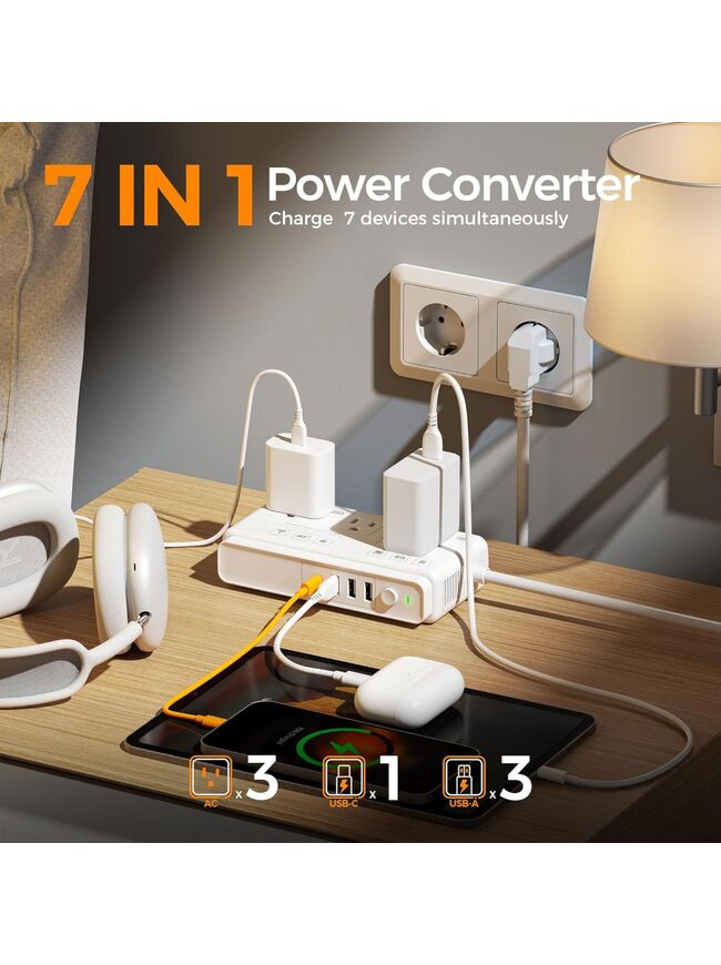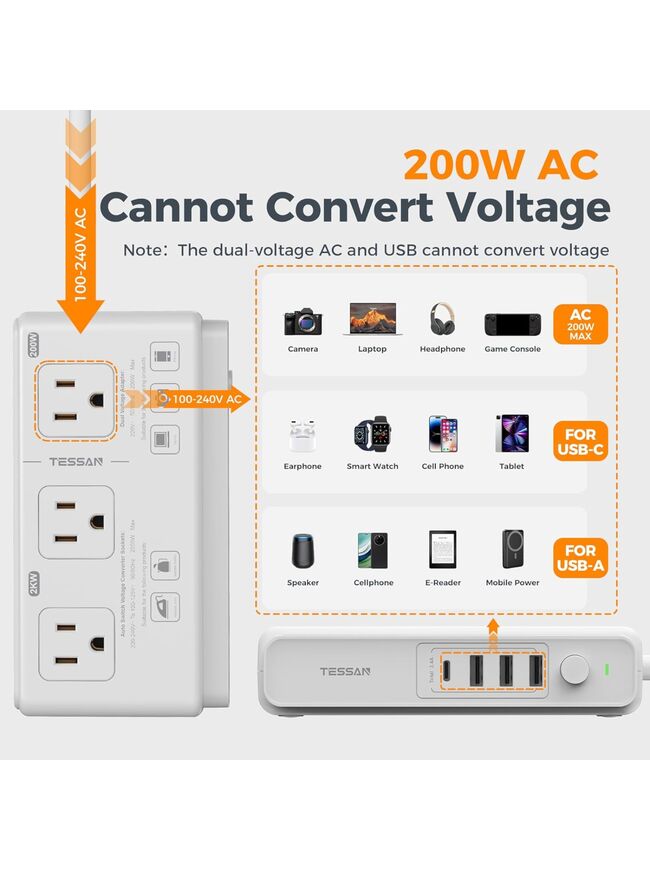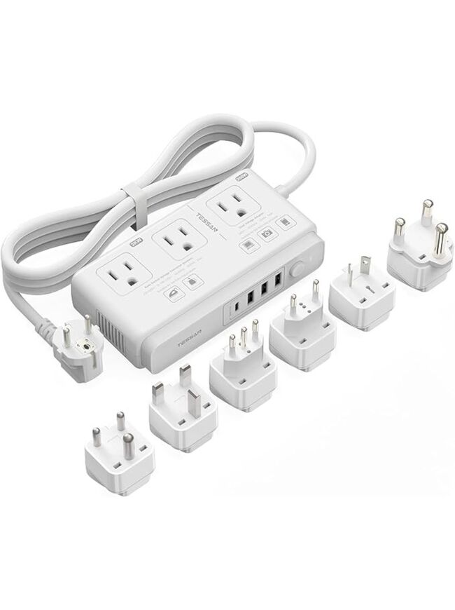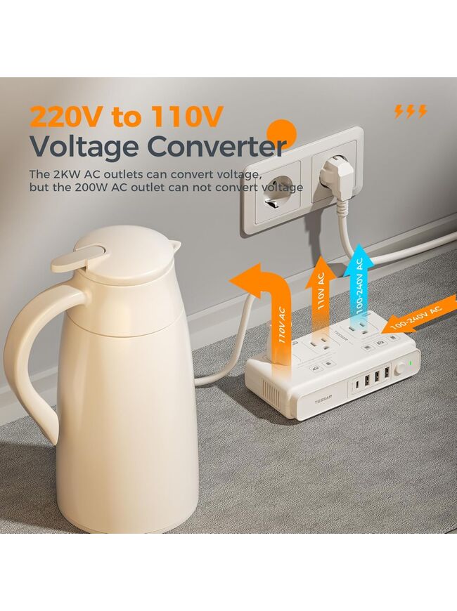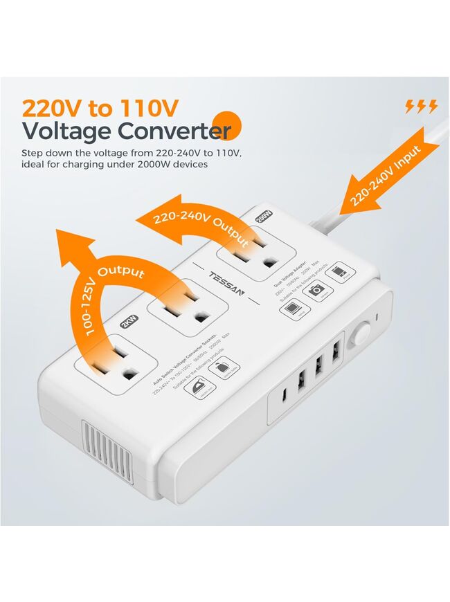 TESSAN 220V to 110V Voltage Converter for Travel with 4 USB Ports (1 USB C), 3 AC Outlet and EU UK AU IT in ZA International Power Adapter, Step Down Transformer Outlet Converters White