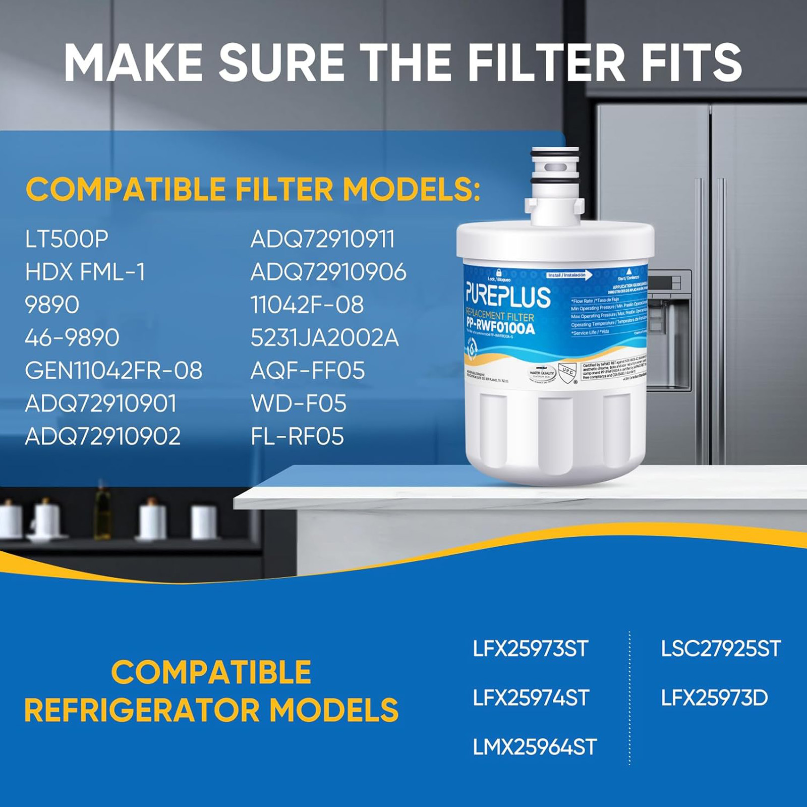 PUREPLUS 5231JA2002A Replacement for LG LT500P, ADQ72910901, GEN11042FR-08, Kenmore 9890, 469890, HDX FML-1, ADQ72910907, LSC27925ST, LFX25974ST, LFX25973D, LFX25973ST Refrigerator Water Filter, 3Pack
