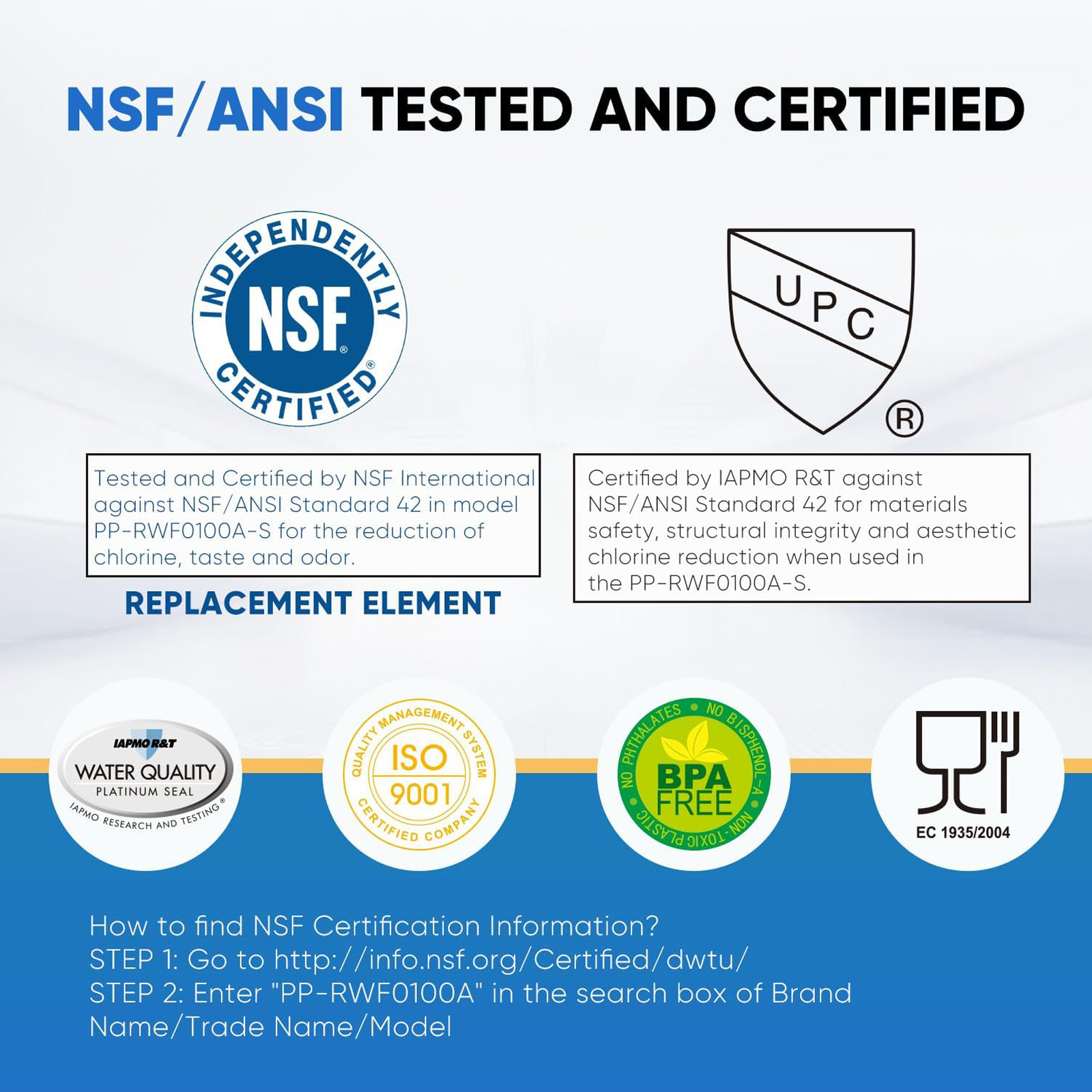 - Authoritative Certifications - The filter is certified by NSF/ANSI 42 for reducing chlorine, taste, and odor, and NSF/ANSI/CAN 372 for lead-free compliance. It removes 99% of chlorine, enhancing water taste. It is also certified by Canadian CSA, BPA Free, and Australian Water Mark. Only select products with authoritative certifications for your households.