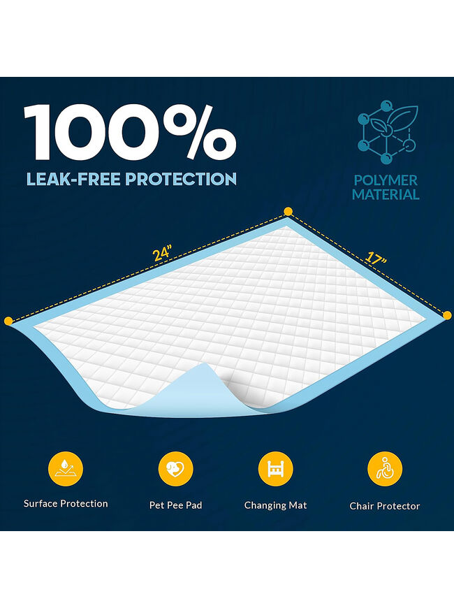 Medpride Disposable Underpads 17'' x 24'' (100-Count) Incontinence Pads, Bed Covers, Puppy Training | Thick, Super Absorbent Protection for Kids, Adults, Elderly | Liquid, Urine, Accidents