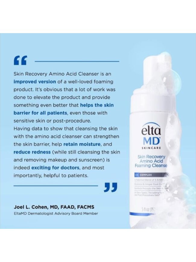 EltaMD Skin Recovery Amino Acid Foaming Facial Cleanser, Gentle Face Cleanser for Sensitive Skin 1Fl OZ