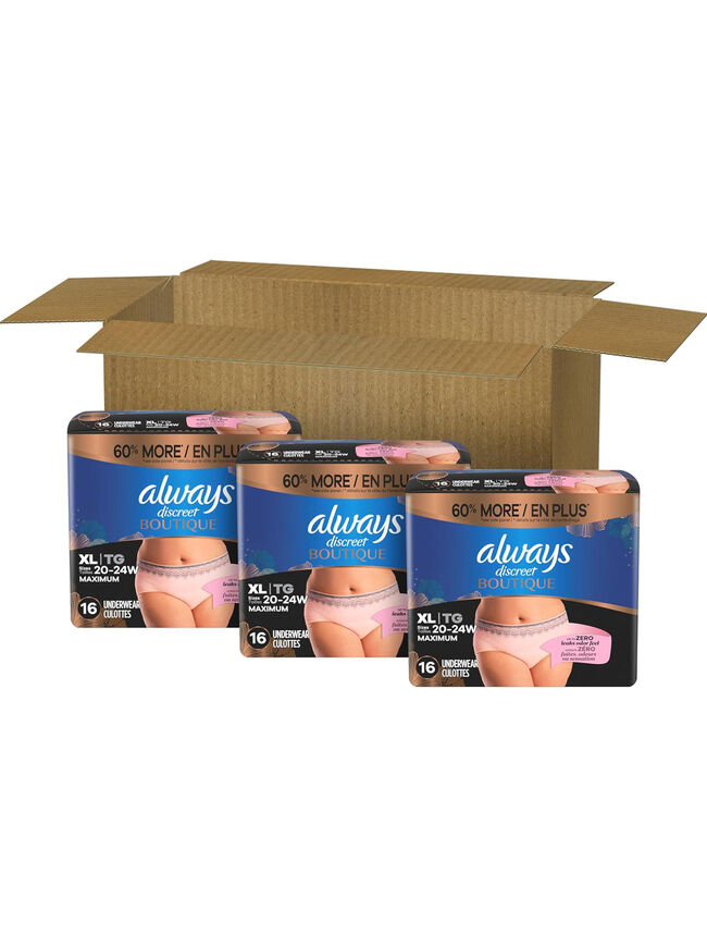 Always Discreet Boutique XL Women's Underwear, 48 Ct, Maximum Protection