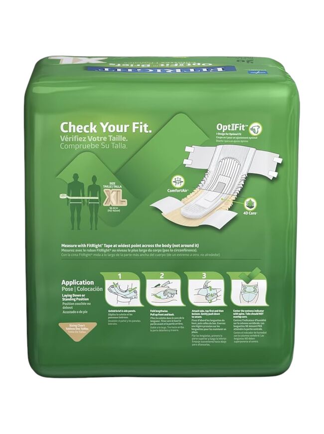 FitRight Adult Diapers, Extra Heavy Absorbency, XL (Waist Size 56in-64in), 80 Count, OptiFit Incontinence Briefs for Men and Women, Disposable, Moisture Wicking, Leak Protection