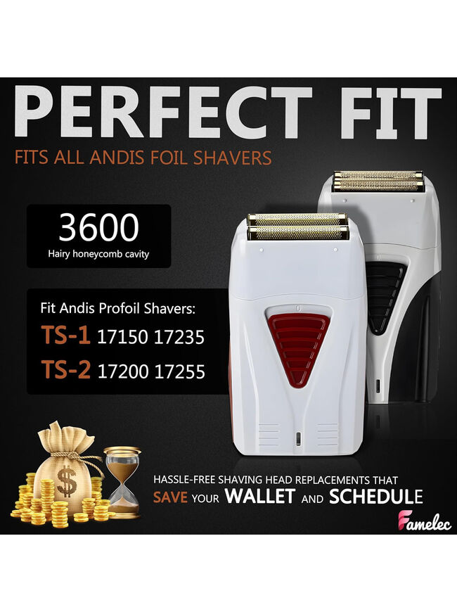 FAMELEC Andis ProFoil Lithium Replacement Foil & Cutters (2 Pack): For TS-1/TS-2, Titanium