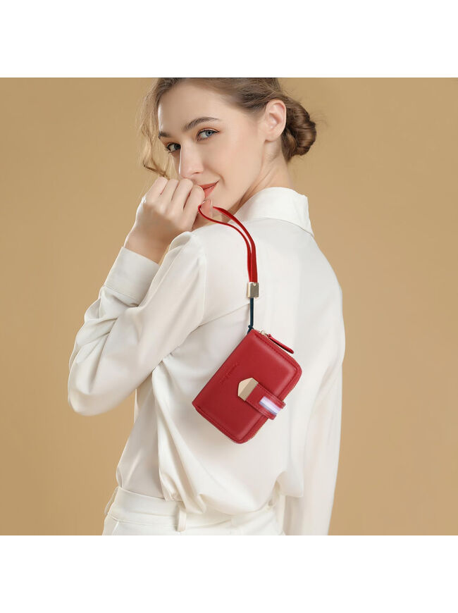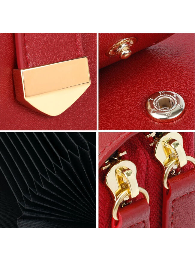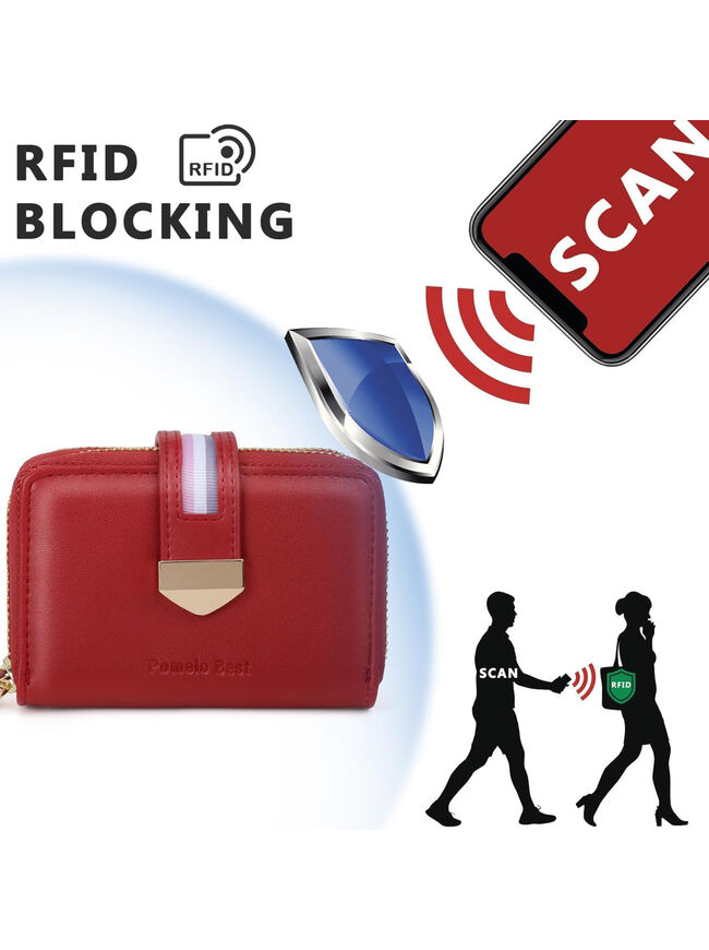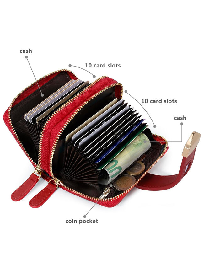 Pomelo Best Red RFID Ladies Wallet: Double Zipper Card Case for 24 Cards & Coins