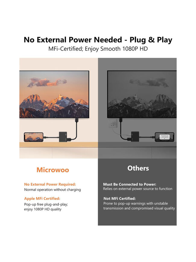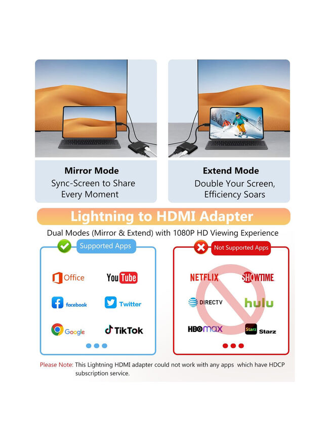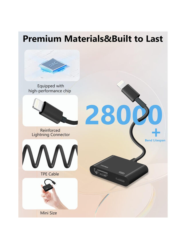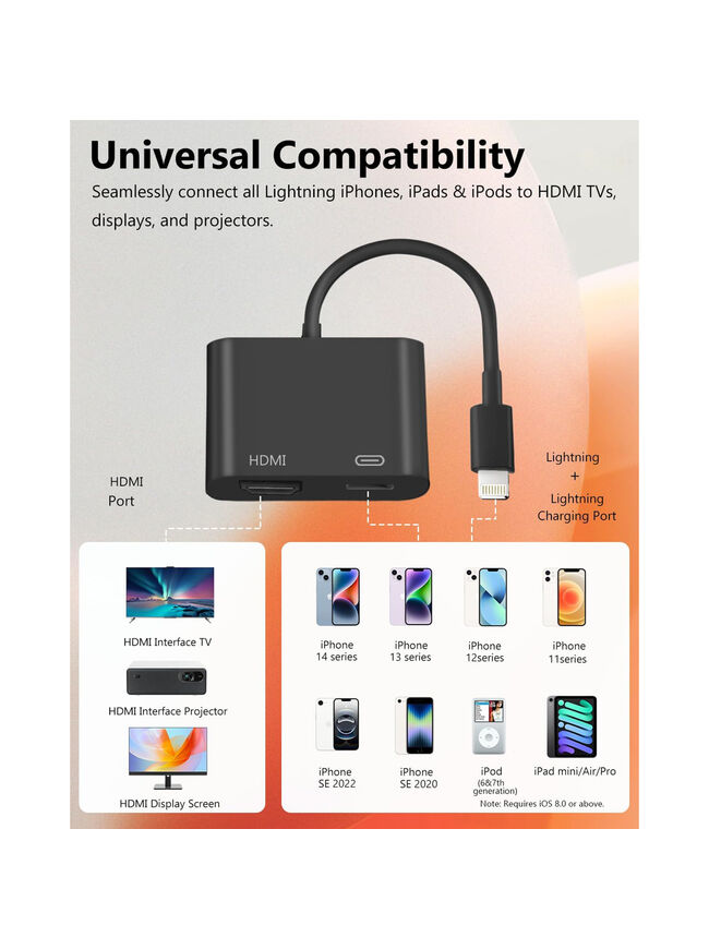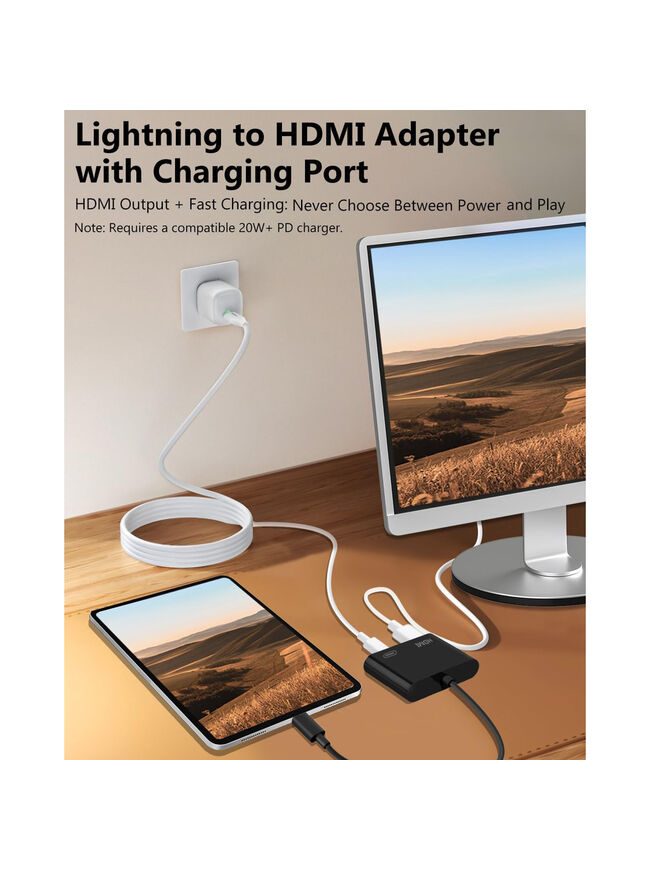 Dansrue Lightning to HDMI Adapter for iPhone/iPad: 1080P Sync, Charging Port, Black