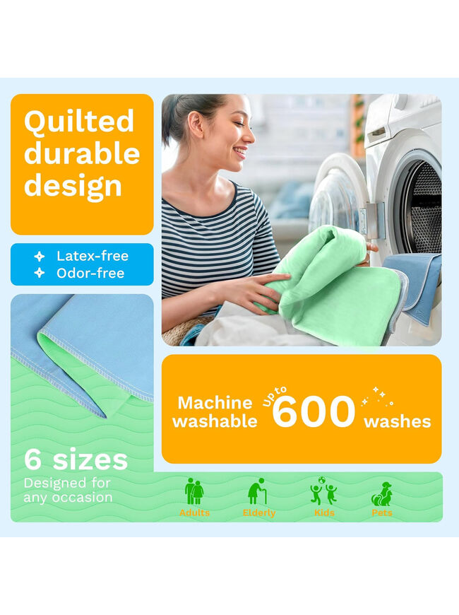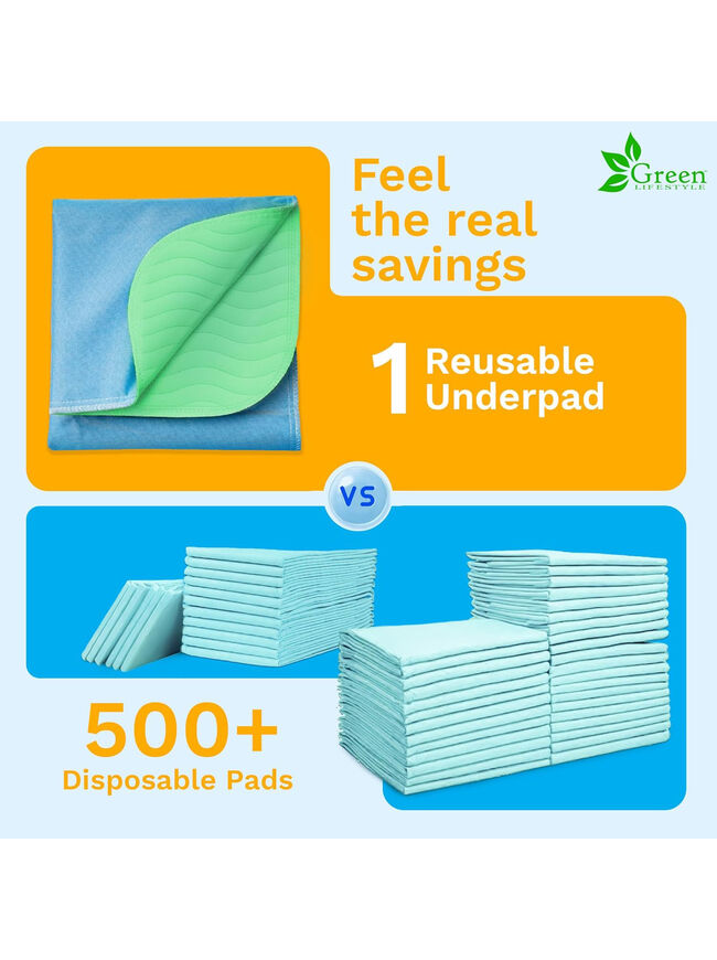 GREEN LIFESTYLE® 2Pack 41x41 Washable Underpads - Heavy Absorbency Reusable